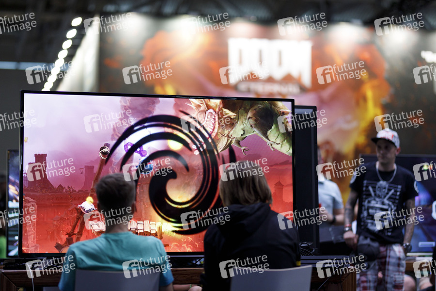 Play, Player, Bildschirmlicht, Spielesucht, Digitalisierung, Reizüberflutung, Spiele-Messe, Gaming, Gaming-Industrie, Spieleindustrie, Spielemesse, Gamingindustrie, Zocken, Daddeln, Games, Game, Spiele, PC-Spiele, Computerspiele, Konsolen, Konsolenspiele, Videospiele, Fair, Event, Gamer, Unterhaltungselektronik, Software, Hardware, europäische Leitmesse für digitale Spielekultur, internationale Gaming-Community, Gamescom Congress 2019, Virtual Reality, Browsergames, Spieletrends, Symbolfoto, Symbolbild