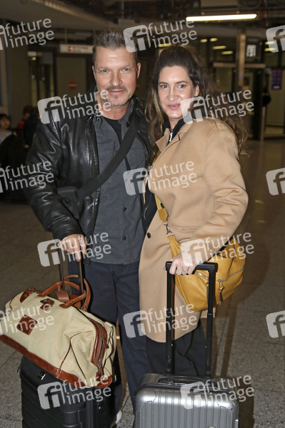 Hardy Krüger jr. mit Ehefrau Alice Krüger bei der Abreise der Dschungelcamp-Kandidaten der RTL Reality-TV-Show 'Ich bin ein Star - holt mich hier raus' nach Australien auf dem Flughafen Frankfurt am Main. Frankfurt, 16.01.2026