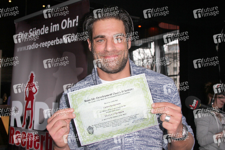 Photocall mit Carsten Spengemann zu seinem ersten Tag bei Radio Reeperbahn in den Tanzenden Türmen, Hamburg