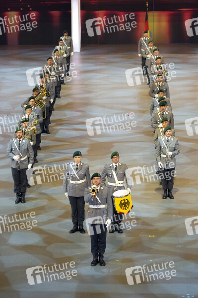 Military Tattoo, Zapfenstreich, Militärmusik, Nationalhymne, Tanzdarbietungen, Gesangsdarbietungen, Aufführung, Militärkapellen, Militär Band, Big Band, Bundeswehr, Einmarsch, Ausmarsch, Tänze, Instrumente, Zuschauer, Showorchester, Bühnenshow, Musiker, Musikkorps