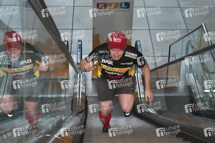 Pressetermin zum Guinness Weltrekord-Versuch. Joey Kelly will parallel zum RTL-Spendenmarathon eine herunterfahrende Rolltreppe 24 Stunden lang hochsteigen im RTL-Gebäude, Köln