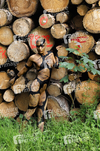 Bodypainting, Körperfarbe, Körperkunst, Körpermalerei, Künstler, Kunst, Art, Bodyart, Akt, Fineart, Malerei, Farbe, Fotografie, Fotoshooting, Foto, Fotoart, Frau, Fotomodell, Aktmodel, Fotomodel, Model, Aktmodell, Nacktmodell, Bodypaintingmodel, Bodypaintingmodell, Bodypaintmodel, Natureart, Natur, Landschaft, Jahreszeit, Sommer, versteckte Körper, Natur, Umweltschutz, Tarnung, getarnt, Holzzstoß, Naturschutz, Klima, Klimaschutz, Umwelt, Ökologie, Holz, Baum, Bäume, Wald, nudemodel, nude, nudeart, nude art, naked art, naked model, nackt, nature, landscape, season, summer, hidden bodies, environmental protection, climate protection, environment, ecology, wood, tree, trees, forest, wood pile, camouflage