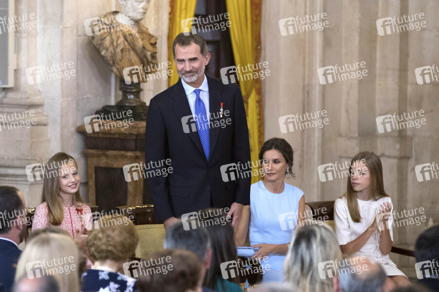 Prinzessin Leonor, König Felipe, Königin Letizia und Prinzessin Sofia bei der Verleihung der Orden del Mérito Civil im Palacio Real. Madrid, 19.06.2019
