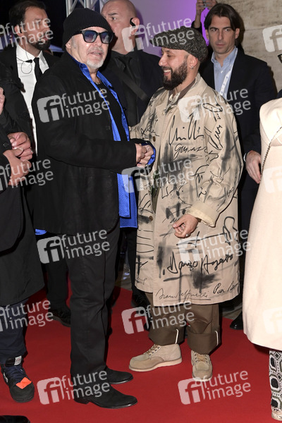 Vasco Rossi und Giuseppe Domingo Romano bei der Premiere des Konzertfilms 'Vasco Live - Circo Massimo Roma' im Space Cinema Moderno. Rom, 08.11.2022