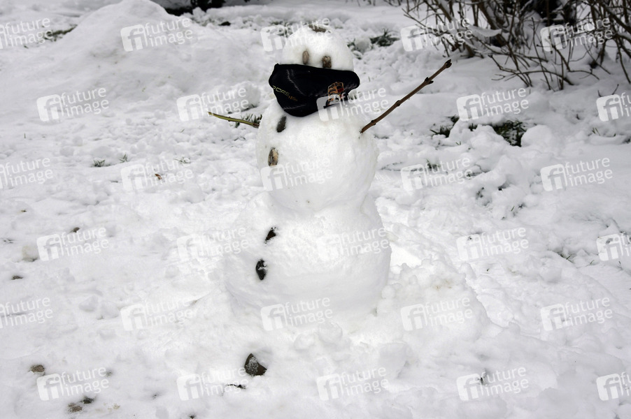 Winter, Frost, kühl, Minusgrade, Schnee, Wintereinbruch, Schneefall, Schneemann, Eis, Schneegestöber, Jahreszeiten, kalt, Kälte, Wetter, Winterwetter, Winterzeit, Pandemie, Schutzmaske, Mundschutzpflicht, Maskenpflicht, Mundschutz-Pflicht, Mund-Nase-Schutz, Mund-Nasen-Schutz, MNS, FFP1, infizieren, Vorbeugung, Prävention, schützen, Schutz, Ausnahmezustand, Coronamaßnahmen, Corona-Infektion, Corona-Infektionen, Symbolfoto, Symbolbild