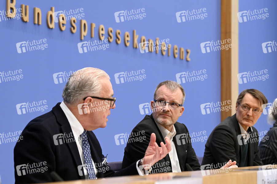 Klaus Reinhardt, Jens Baas und Karl Lauterbach bei der Bundespressekonferenz 'ePA-Start in Modellregionen: Digitalisierungsschub für Patienten und Praxen' im Haus der Bundespressekonferenz. Berlin, 15.01.2025