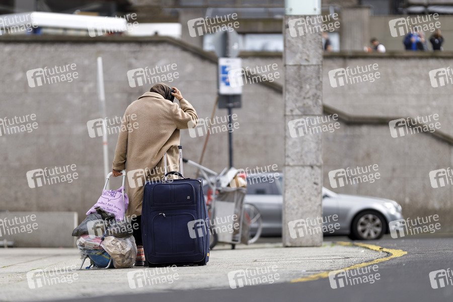 Altersarmut bedroht immer mehr alte Menschen in Deutschland. Ende 2020 waren so viele Senioren auf Grundsicherung angewiesen wie noch nie. Im Bild eine alte Dame, die ihre Habseligkeiten in Koffer und Tüten hinter sich herzieht. (Themenbild, Symbolbild) Köln, 04.06.2021
