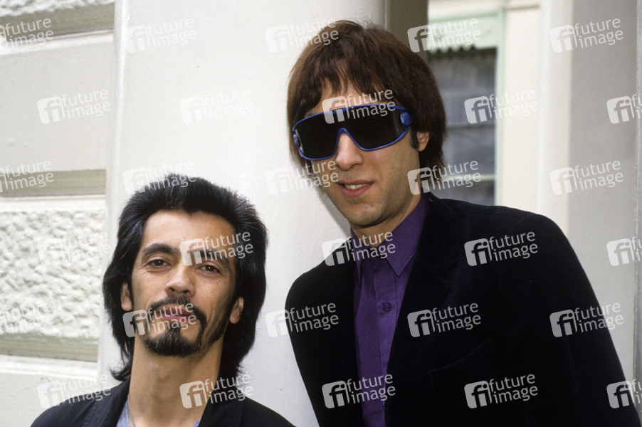 George Alexander und Cyril Jordan von The Flamin’ Groovies bei einem Photocall vor einem Hotel. London, 10.09.1987