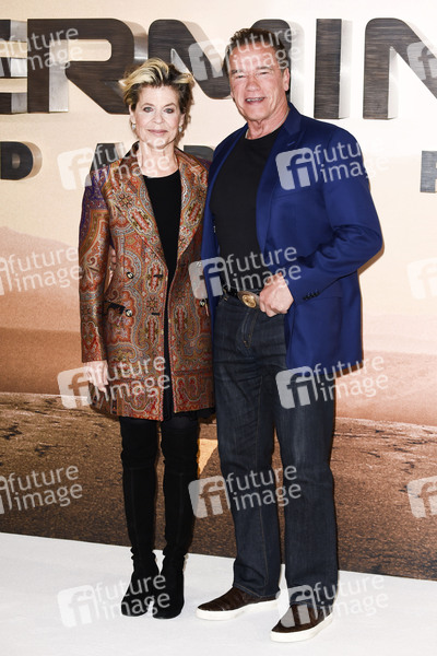 Linda Hamilton und Arnold Schwarzenegger beim Photocall zum Kinofilm 'Terminator: Dark Fate' im Mandarin Oriental Hotel. London, 17.10.2019