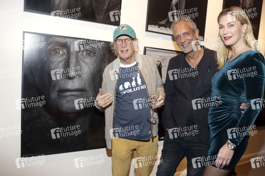 Otto Waalkes, Bob Leinders und Kirsten Roschlaub bei der Vernissage der Fotoausstellung 'Covered II – Famous Friends' von Bob Leinders in der Galerie Roschlaub. Hamburg. 05.12.2019