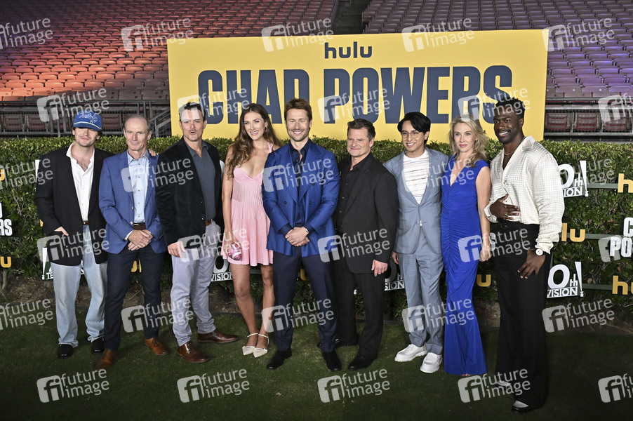 Colton Ryan, Toby Huss, Clayne Crawford, Perry Mattfeld, Glen Powell, Steve Zahn, Frankie A. Rodriguez, Wynn Everett und Quentin Plair bei der Premiere der Hulu-Serie 'Chad Powers' im Rose Bowl Stadium. Pasadena, 25.09.2025
