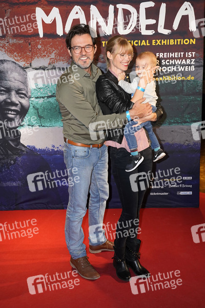 Tobey Wilson mit Ehefrau Sabrina Gehrmann und Sohn Paul beim VIP-Opening der Ausstellung 'Mandela: The Official Exhibition' im Bikini Berlin. Berlin, 18.10.2019