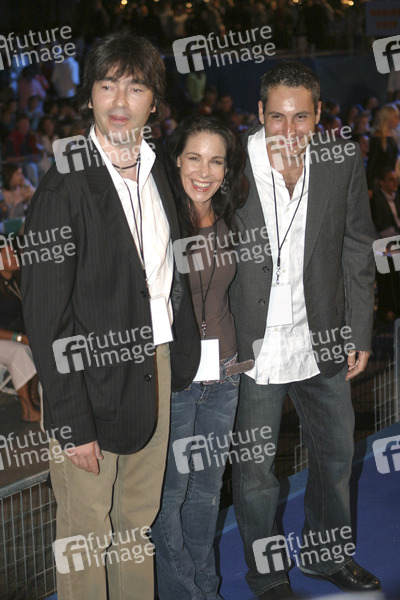 Bibo Bergeron, Vicky Jenson und Rob Letterman bei der Premiere des Animationsfilms 'Shark Tale / Große Haie - Kleine Fische' in Rahmen der Biennale di Venezia 2004 / 61. Internationale Filmfestspiele von Venedig auf dem Markusplatz. Venedig, 10.09.2004