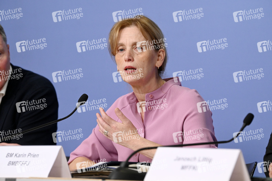 Karin Prien bei der Pressekonferenz Jahresbericht 2024 von jugendschutz.net 'Sexualisierte Gewalt und Hass: Risiken für Kinder und Jugendliche im Netz' im Haus der Bundespressekonferenz. Berlin, 20.05.2025