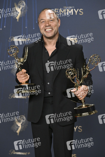 Stephen Graham mit dem Emmys für das beste Drehbuch, den besten Hauptdarsteller und die beste Miniserie 'Adolescence' beim Preisträger-Photocall der 77. Primetime Emmy Awards 2025 im Peacock Theater. Los Angeles, 14.09.2025