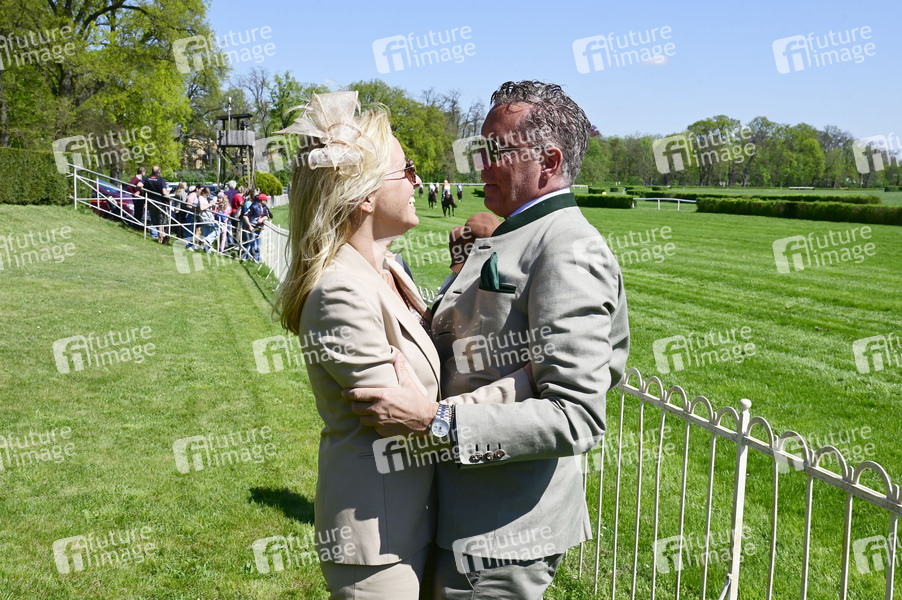 Patrick Graf von Faber-Castell mit Partnerin Sandra-Sophie Trauboth bei der Großen Saisoneröffnung 2025 auf der Rennbahn Hoppegarten. Berlin, 20.04.2025