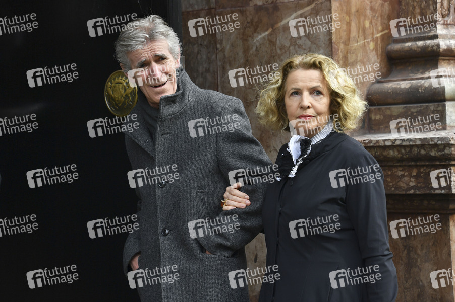 Bernd Schadewald und Michaela May bei der Trauerfeier für Joseph Vilsmaier in der Kirche St. Michael. München, 02.03.2020