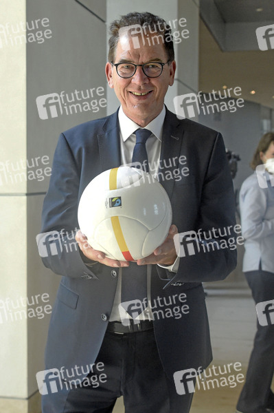 Gerd Müller mit EM-Fußball am Rande der 234. Sitzung des Deutschen Bundestages im Reichstagsgebäude. Berlin, 11.06.2021