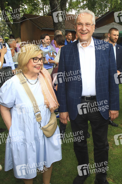 Joachim Herrmann mit Ehefrau Gerswid Herrmann beim Greipl Charity Sommerfest zugunsten von LichtBlick Seniorenhilfe e.V. im Prof. Erich Greipl Stadion. Ismaning, 05.07.2024
