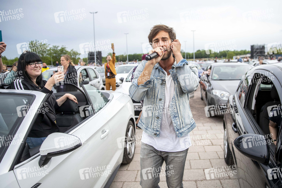 Musiker, Sänger, Pop, Musik, Konzert, Auftritt, Bühne, Stage, live, Unterhaltung, Entertainment, Kultur, Corona, Sars-CoV-2, Covid-19, Coronavirus, Coronakrise, Corona-Krise, Corona-Pandemie, Coronamaßnahmen, Corona-Schutz, Kontaktverbot, Mindestabstand, Social Distancing, Abstand, Abstandhalten, Abstandsregel, Auto, Autokonzertreihe, Autokonzert, Auto-Konzert