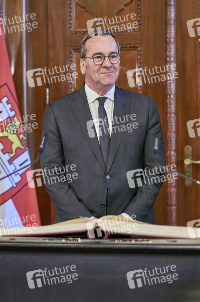 Boris Pistorius beim Eintrag in das Goldene Buch der Stadt Hannover im Neuen Rathaus. Hannover, 12.11.2024