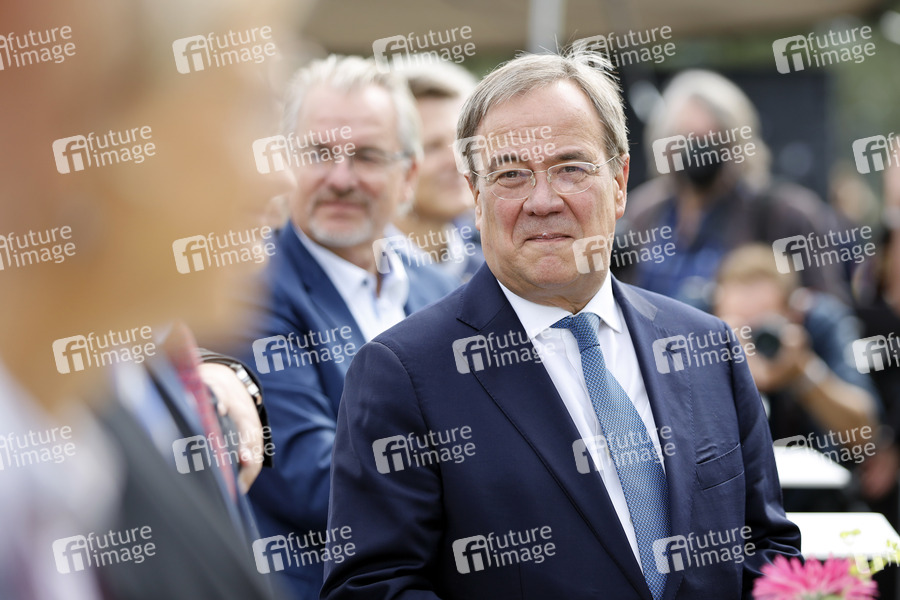 Armin Laschet bei der Inbetriebnahme das Pumpwerks Oberhausen und damit des gesamten Abwasserkanals Emscher. Bis Ende 2021 wird die Emscher sukzessive von ihrer Schmutzfracht befreit. Oberhausen, 20.08.2021