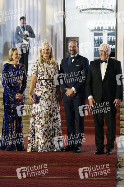 Elke Büdenbender, Kronprinzessin Mette-Marit von Norwegen, Kronprinz Haakon von Norwegen und Frank-Walter Steinmeier bei der Ankunft zum Abendessen anlässlich des 25. Jubiläums der Nordischen Botschaften im Schloss Bellevue. Berlin, 21.10.2024