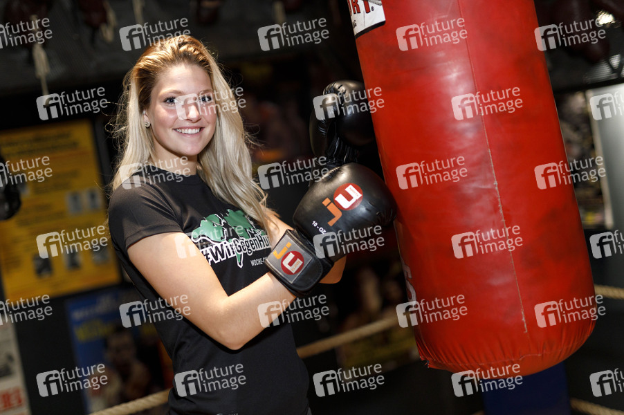 Luisa Merkentrup beim Fototermin zur sportichen '#WocheChallenge' im Deutschen Sport & Olympia Museum. Unter dem Motto 'Wir können was bewegen!' ruft die Welthungerhilfe zu dieser Challenge auf und bittet um Spenden für eine Welt ohne Hunger. Köln, 07.10.2020