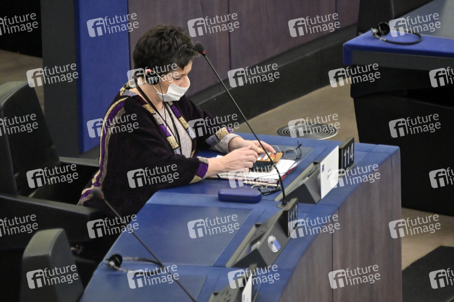 Sylvia Limmer bei einer Plenartagung über den Schutz von Tieren beim Transport im Plenarsaal des Europäischen Parlaments. Straßburg, 20.01.2022