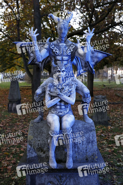 GEEK ART - Bodypainting and Transformaking: Gargoyle Photoshooting mit Enrico Lein und Marlena Wieland an der Nikolaikapelle auf dem Nikolaifriedhof. Hannover, 28.11.2019 - Ein Projekt des Fotografen Tschiponnique Skupin und des Bodypainters und Transformakers Enrico Lein