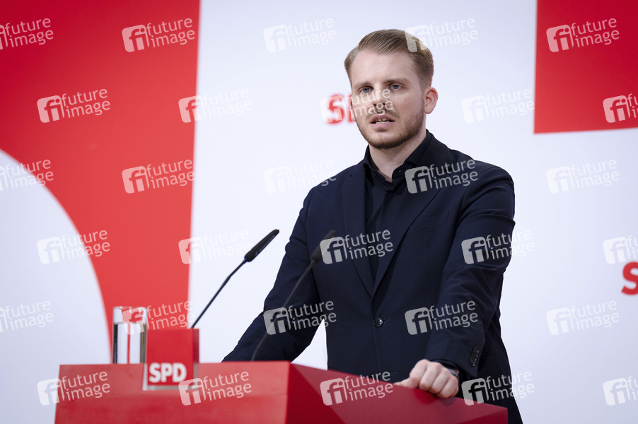 Tim Klüssendorf bei der Pressekonferenz nach der SPD Gremiensitzung im Willy-Brandt-Haus. Berlin, 23.02.2026