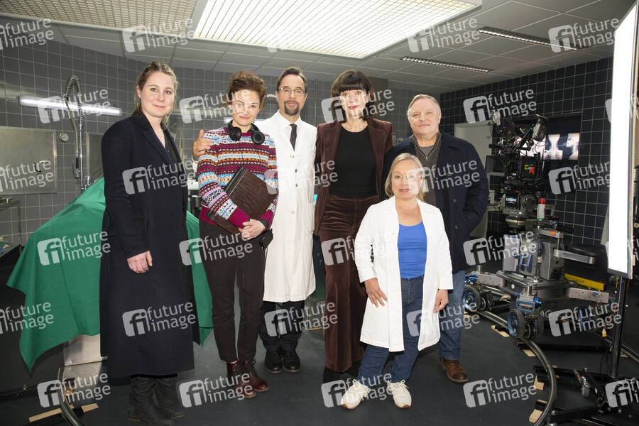 Redakteurin, Regisseurin, Schauspieler, Produzentin, Schauspielerin, Prominenz, TV, Fernsehen, Krimi, Filmset, Fotocall, Photocall, Settermin, Dreharbeiten, TV-Film, Krimireihe, Serie, ARD, Das Erste, WDR, Tatort Münster, Rechtsmedizin