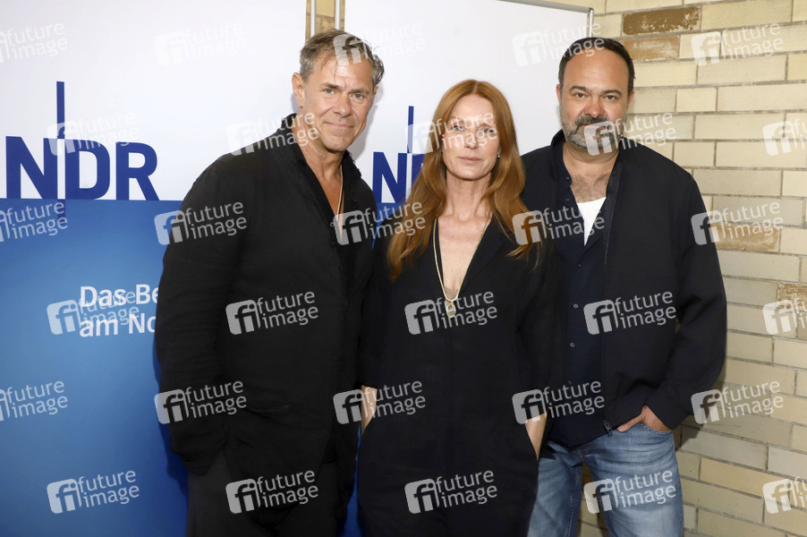 Sven Martinek, Esther Schweins und Tom Keune bei der Preview der NDR Doku 'Der Norden zwischen Petticoat und Spätheimkehrern' im Holi Kino. Hamburg, 24.04.2025