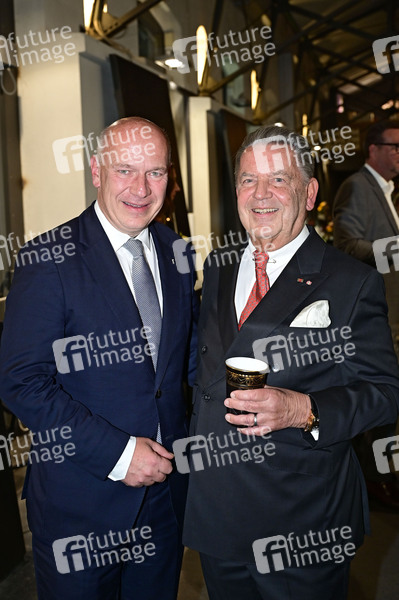 Kai Wegner und Jörg Woltmann beim Flying Dinner zum 261. Geburtstag der Königlichen Porzellan-Manufaktur Berlin sowie der Enthüllung des vollständig, restaurierten Fliesenwandgemäldes 'Glory of Germania' in der Ringkammerofenhalle auf dem Manufakturgelände. Berlin, 20.09.2024