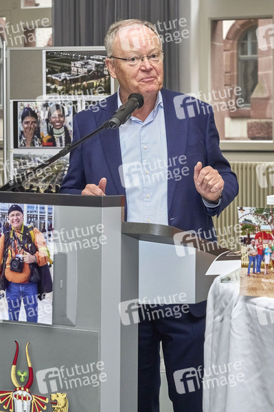 Stephan Weil bei der Auszstellungseröffnung '25 Jahre EXPO 2000 - Bilder einer Weltausstellung' von Hassan Mahramzadeh unter der Schirmherrschaft von Ministerpräsident a.D. Stephan Weil im Bürgersaal vom Neuen Rathaus. Hannover, 26.10.2025