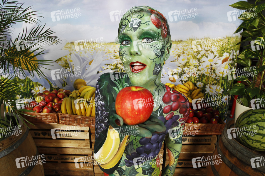 Bodypainting Meets Business, Body-Painting, Erotik, Frau, Mädchen, nackt, Akt, weiblich, Körperkunst, Körperfarben, Farbe, Bemalung, Kunst, Malerei, Fotografie, Beruf, Obst, Früchte, gesund, Ernährung, Apfel, Banane, Ananas, Melone, Joerg Dewaldo Duesterwald, body painting, erotic, woman, girl, nude, female, body art, colors, photography, profession, fruit, fruits, healthy, nutrition, apple, banana, pineapple, melon