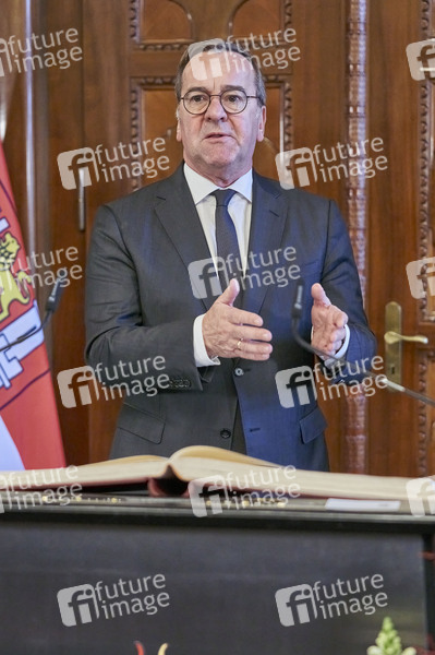 Boris Pistorius beim Eintrag in das Goldene Buch der Stadt Hannover im Neuen Rathaus. Hannover, 12.11.2024