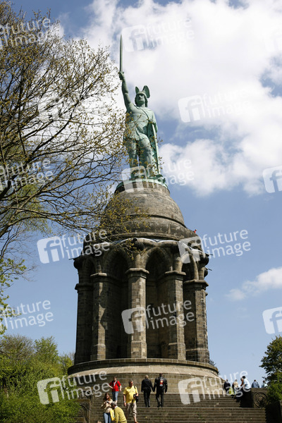 soll an den Cheruskerfürsten Arminius (Lateinisch, in deutsch: Hermann) erinnern, Gesanthöhe 53.46 m, Sandsteinunterbau 26.89m, Figur 26.57 m, besteht aus einer Eisenrohrkonstruktion mit Oberfläche aus Kupferplatten, Erbauer Ernst von Bandel, Baubeginn 1838, nach der Revolution von 1848 ruhte der Bau bis 1863, festliche Einweihung 1875