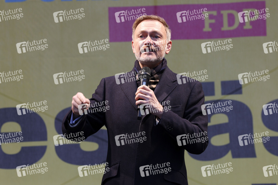 Christian Lindner bei einer Wahlkampfveranstaltung der FDP zum Bundestagswahlkampf 2025 am Dr. Külz Ring. Dresden, 06.02.2025