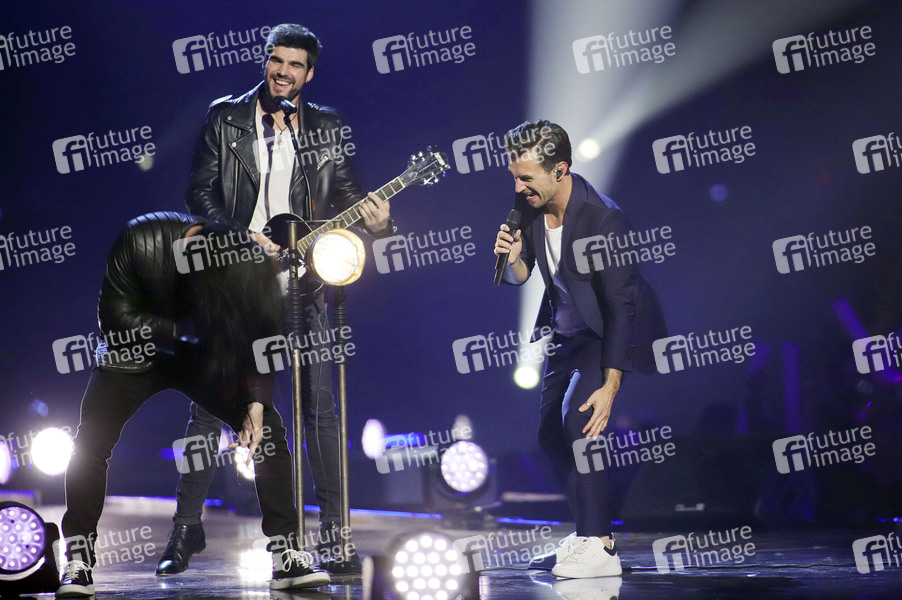 Bülent Ceylan, Martin Goldenbaum und Florian Silbereisen in der TV Show 'Schlagerbooom 2021 - Alles funkelt! Alles glitzert!' in der Dortmunder Westfalenhalle. Dortmund, 23.10.2021