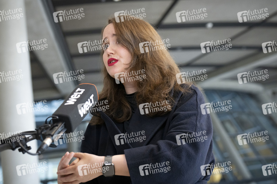 Ricarda Lang beim Pressestatement nach der Fraktionssitzung der Bündnis 90/Die Grünen-Bundestagsfraktion im Reichstagsgebäude. Berlin, 26.02.2025