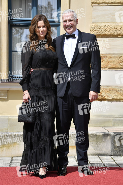 Alexander Herrmann mit Ehefrau Maxi Friedrichs bei der Eröffnung der 112. Richard-Wagner-Festspiele 2024 mit der Neuinszenierung von 'Tristan und Isolde' im Bayreuther Festspielhaus. Bayreuth, 25.07.2024