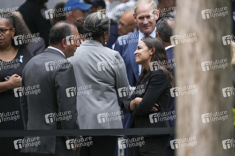 Alexandria Ocasio-Cortez bei der Gedenkfeier für die Opfer der Terroranschläge vor 21 Jahren am 9/11 Memorial. Mit Schweigeminuten und der Verlesung der Namen der fast 3000 Todesopfer haben die USA am Sonntag an die Terroranschläge vom 11. September 2001 erinnert. Am früheren Standort des World Trade Centers in New York verlasen Angehörige wie jedes Jahr am 11. September die Namen aller Anschlagsopfer. New York, 11.09.2022