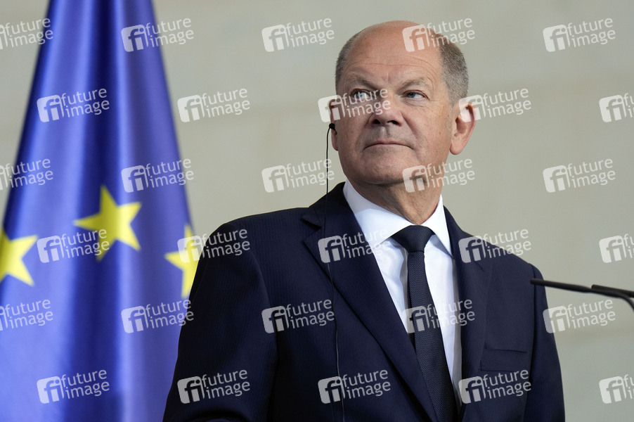 Olaf Scholz beim Empfang des Premierministers von Japan mit militärischen Ehren und zu einem gemeinsamen Gespräch mit anschließendem Pressestatement im Bundeskanzleramt. Berlin, 12.07.2024