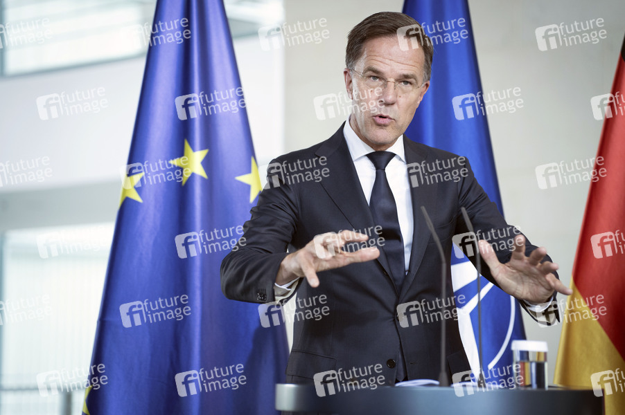 Mark Rutte beim Empfang des NATO-Generalsekretärs zu einem gemeinsamen Gespräch mit dem Bundeskanzler mit anschließendem Pressestatement im Bundeskanzleramt. Berlin, 09.07.2025
