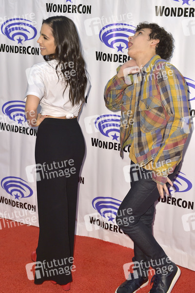 Maria Gabriela de Faria und Benjamin Wadsworth beim Photocall zur Syfy TV-Serie 'Deadly Class' auf der WonderCon 2019 im Anaheim Convention Center. Anaheim, 30.03.2019