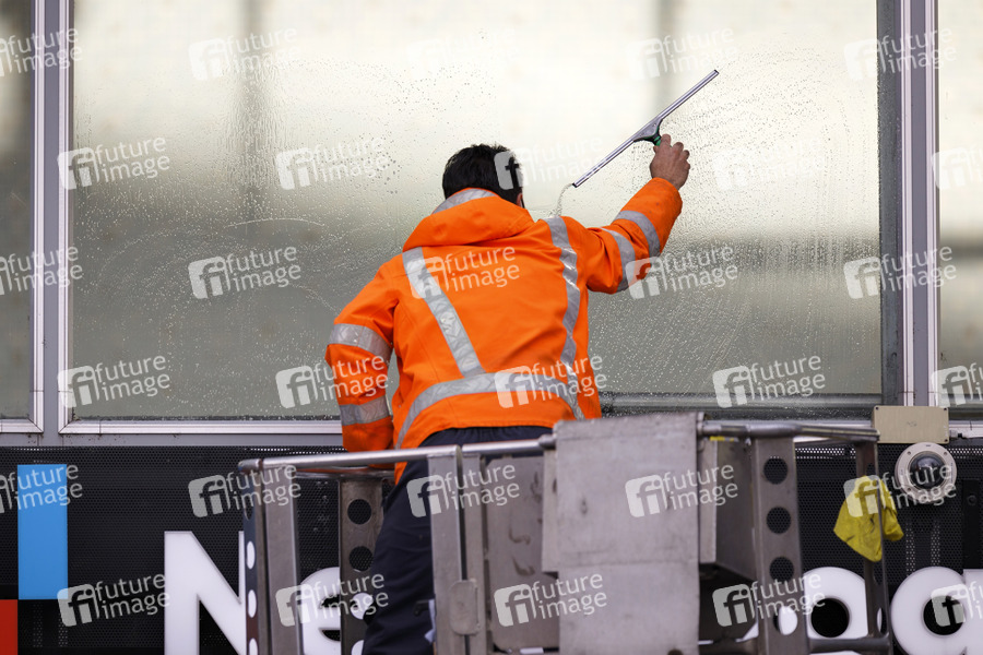 Fenster, Putzen, Fensterputzen, Fassade, Fassadenreinigung, Fassadenreiniger, Gebäudereinigung, Gebäudereiniger, Arbeitssicherheit, Arbeitsrisiko, Hubsteiger, Scheibe, Reinigen, Tariflohn, Reinigungsarbeiten, Sauberkeit, Hygiene, Seife, Seifenlauge, Fensterreiniger, Alkohol, streifenfrei, Arbeit, Kurzarbeit, Handwerk, Dienstleistung, Branchenreport, Einkommen, Durchschnittseinkommen, Einkommensrechner, Lohn, Festanstellung, Reinigungsbranche, Mindestlohn, Warnweste, Stundenlohn, Tarifvertrag, Gehalt, Gehaltsvergleich, Gehaltsrechner, Putzen, Tarifverhandlungen, Gefahr, gefährlich, Job, Höhe, hoch, Höhenangst, Gefahrenzulage, Glas, Symbolbild, Symbolfoto