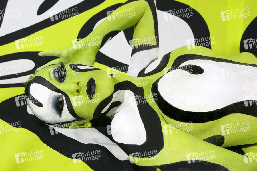 Bodypainting, Stoffdesign Anna Efverlund, Erotik, Frau, nackt, drinnen, weiblich, Muster, Chamäleon, erotic, woman, nude, indoor, female, chameleon
