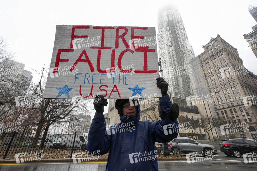 Über 300 Stadtarbeiter und andere protestieren mit einem Marsch über die Brooklyn Bridge, gegen die Ankündigung der Stadt, dass kommunale Angestellte ohne Covid-19-Impfung bis zum Ende der Woche entlassen würden. New York, 07.02.2022