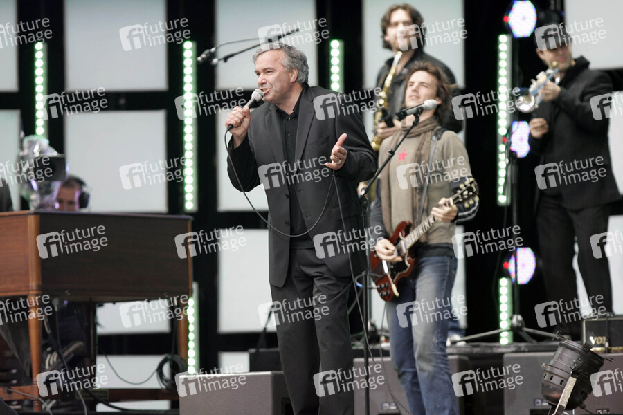 Stefan Gwildis auf dem Live Earth Konzert in der Hamburger HSH-Norbank-Arena. Die weltumspannende Konzertreihe fand auf sieben Kontinenten insgesamt 24 Stunden lang statt. Ins Leben gerufen vom ehemaligen US-Vizepräsidenten und Umweltaktivisten Al Gore und vom Musikproduzenten Kevin Wall, die damit auf die Klimaerwärmung aufmerksam machen wollten.